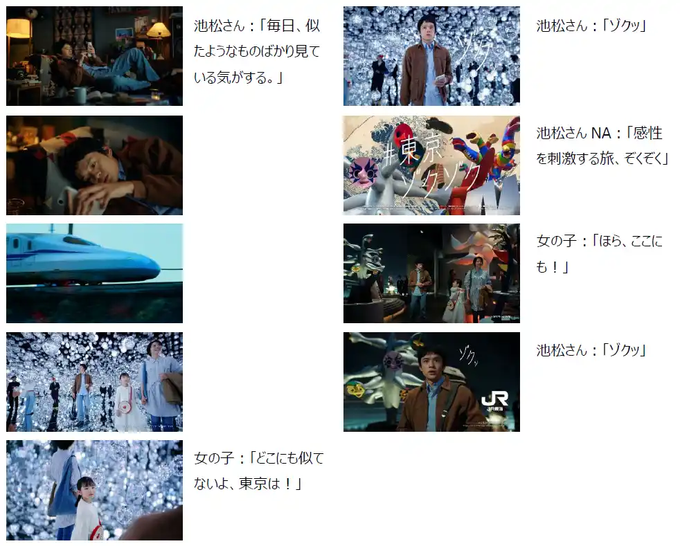 東海旅客鉄道株式会社は、東京の魅力を発信する観光キャンペーン『#東京ゾクゾク』の第二弾として、俳優・池松壮亮さんが出演する新TVCM「アート」編を2026年1月24日(土)より順次放送開始いたします。 |