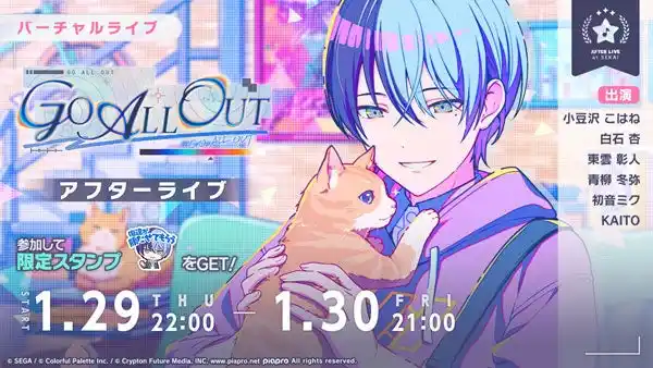 イベント終了後には「バーチャルライブ」でのアフターライブとして、「GO ALL OUT アフターライブ」を開催いたします。 |