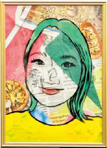 | チラシ、新聞、雑誌、包装紙などを自由に組み合わせたコラージュに、自分の顔をデフォルメし好きな色を塗って、ポップ・アートな自画像を作ろう! | ||||||||||