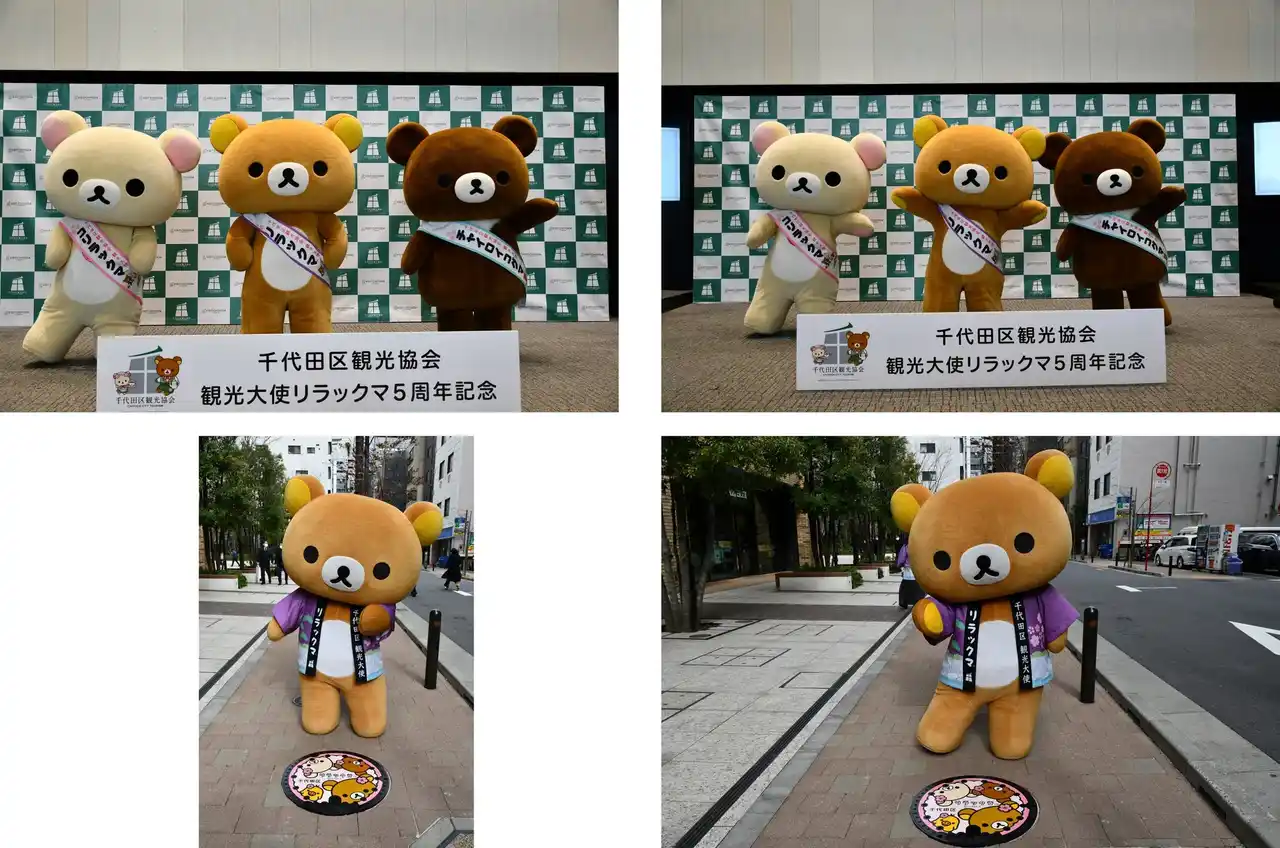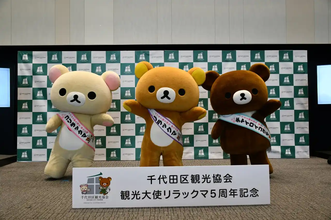 サンエックス株式会社(本社:東京都千代田区)のキャラクター「リラックマ」「コリラックマ」「キイロイトリ」「チャイロイコグマ」は、2026年で「千代田区観光協会観光大使」に就任して5周年を迎えました。 |