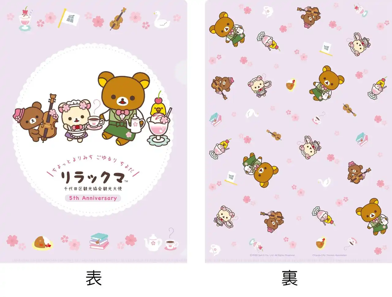 観光大使リラックマたちがカフェでかわいくお出迎え&新しい衣装で新登場!千代田の魅力いっぱいの5周年記念デザインです。 |
