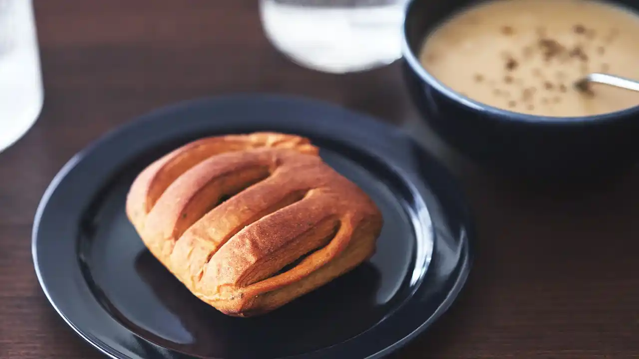 | 炒め玉ねぎの甘みをベースにしたスパイスが効いたカレーを、全粒粉や大豆を使用した生地で包んだ「揚げない」ベイクドカレーパン「BASE BREAD カレー」。今回のリニューアルでは、よりスパイス感を際立たせるため、隠し味としてパン生地にトマトを使用しています。原料素材の選定を何度も繰り返しながら、全粒粉とカレーのスパイシーさの絶妙なハーモニーを実現。トマトの甘みとスパイスの風味を楽しむことのできる本格スパイス香るカレーパンです。また、旧品の包餡形状から折込タイプの形状に改善したことで、一口目からカレーのスパイシーさをお楽しみいただけるようになりました。 | ||||||||||||||||||||