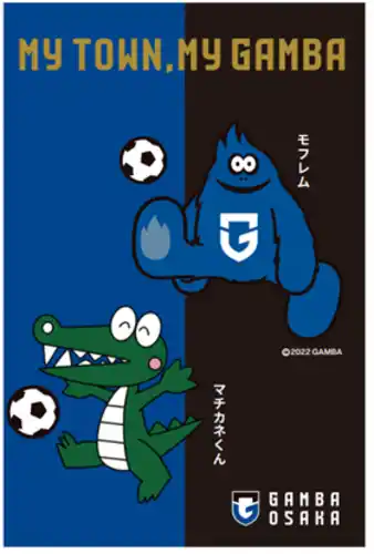 | フラッグには、「空港のあるまち」豊中の特色である飛行機とガンバ大阪オフィシャルマスコット「モフレム」がコラボしたご当地モフレムのデザインを採用。さらに、本市の公式キャラクター「マチカネくん」とモフレムが並んでサッカーをしたデザインも制作しました。 | |||||||||