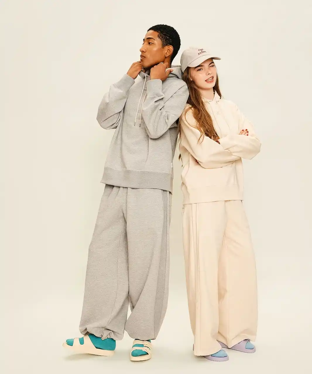スウェット上下 カラー展開:アイボリー/グレー サンダル カラー展開:アイボリー/イエロー/パープル/セージグリーン |