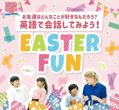 ●3歳~小学生向けの英語学童。英語漬けの環境で、長時間預かり対応 ●Spring School 2026のテーマは、「Easter Magic」。仲間と協力して謎解きや工作に挑戦! ●学年を超えた交流環境で、新生活に大切なコミュニケーション力を育む |