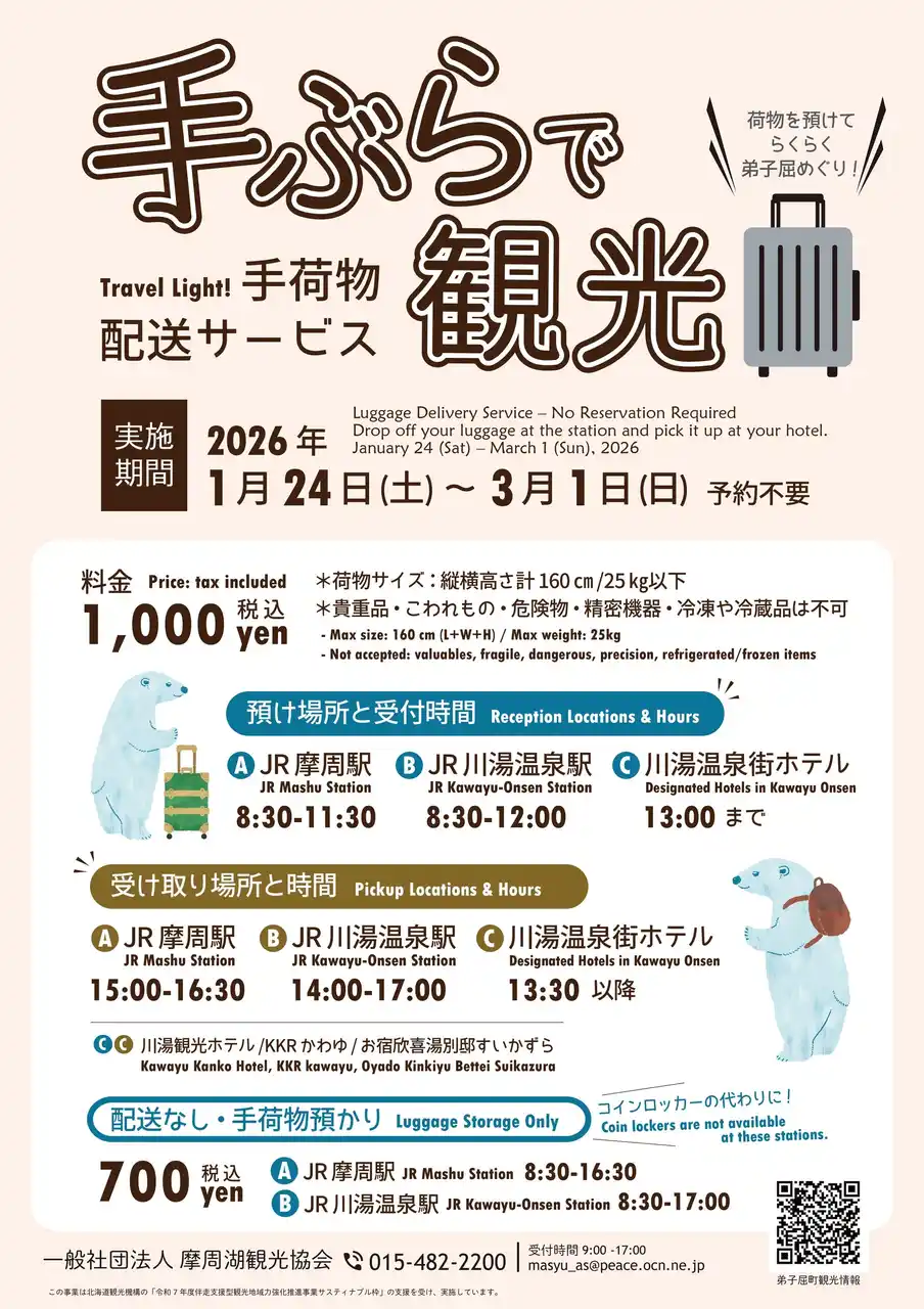 | また、今年度より各駅から川湯温泉街ホテルまでの「手荷物配送サービス」を開始する。 | |||||||||