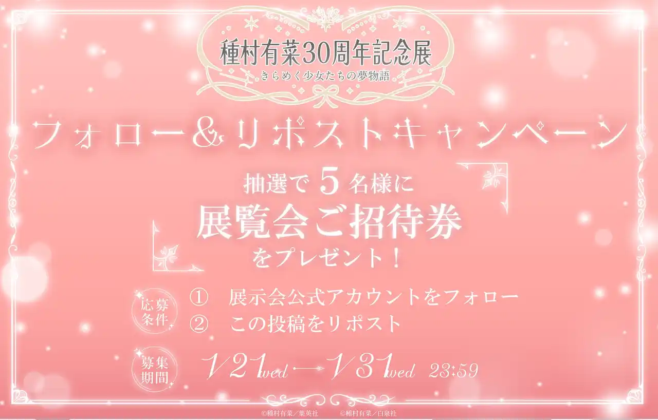 | 【種村有菜 30周年記念展 きらめく少女たちの夢物語 公式SNS】https://x.com/arina_30th | |||