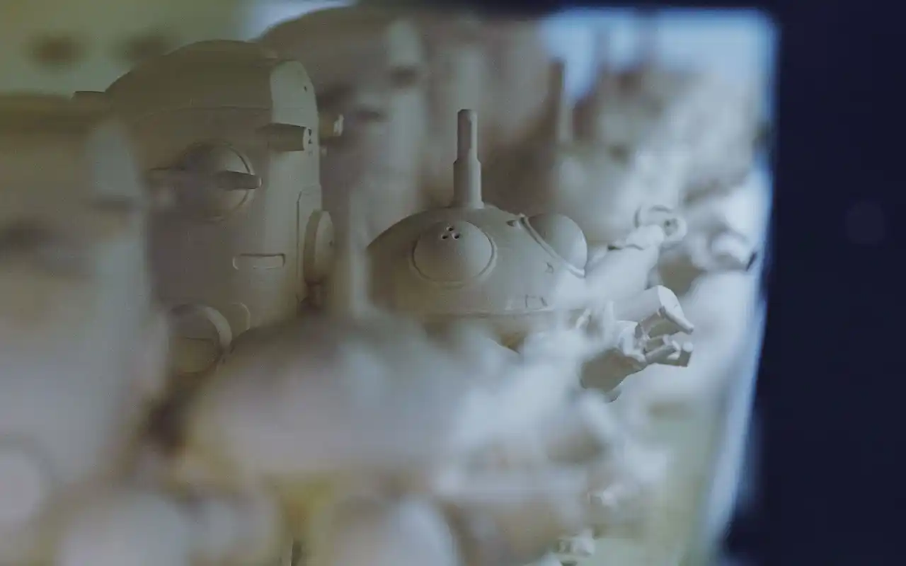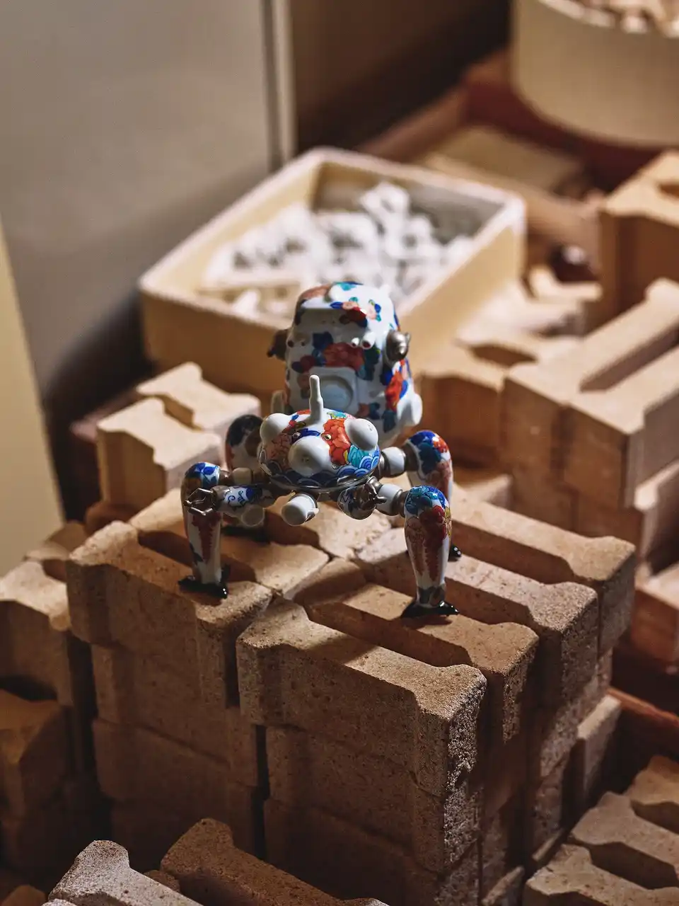 タチコマの特徴的なフォルムを細部まで磁器で再現するために、一から3Dモデルを設計しています。磁器は焼成で縮み、歪み、わずかな厚みの差で破損にもつながります。タチコマの複雑な造形を成立させるには、デジタル造形の精密さと、焼き物特有の“変化”を読み込む経験値の両方が欠かせません。指や関節の太さ、爪の強度、各パーツの収縮率まで細かく検証し、焼成後に最も美しく、かつ長く愛蔵できる姿を追求しました。 |