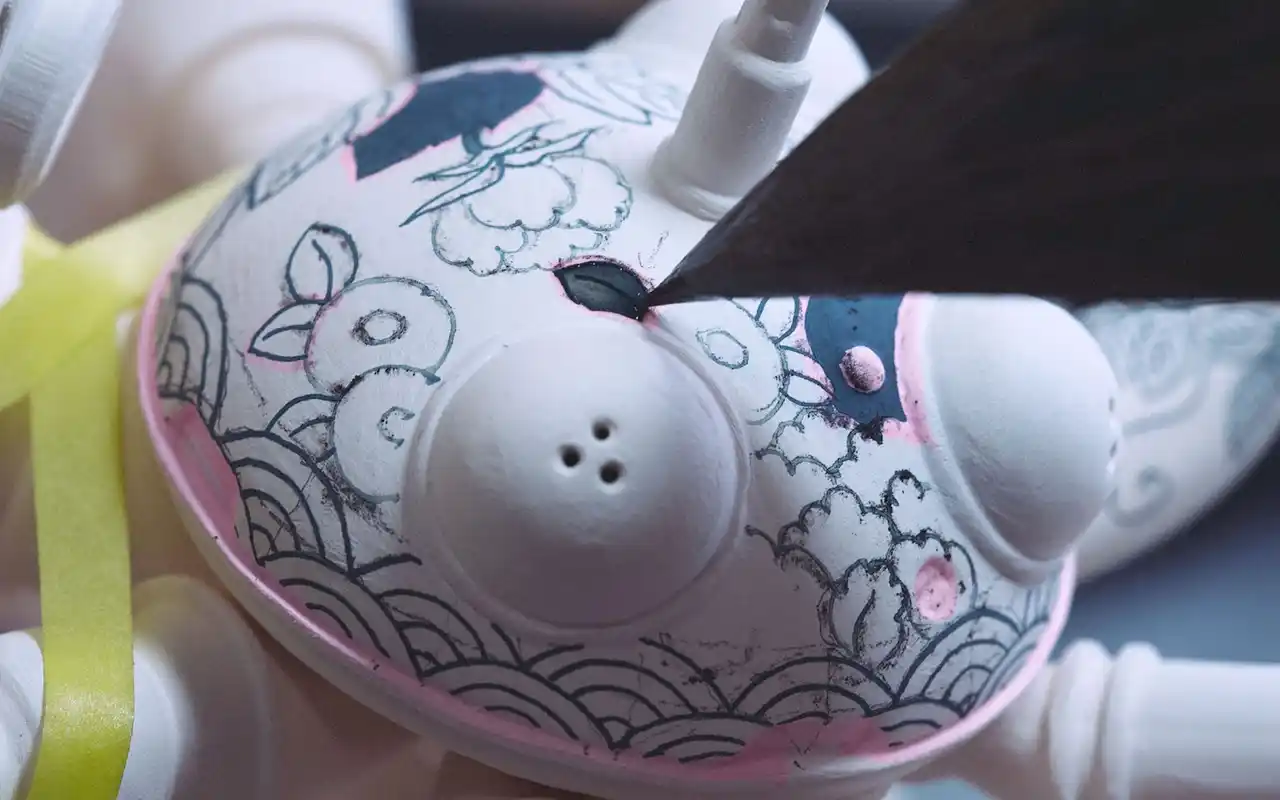 タチコマのボディラインや艶やかな絵付けを際立たせるため、使用する陶石にもこだわっています。 |