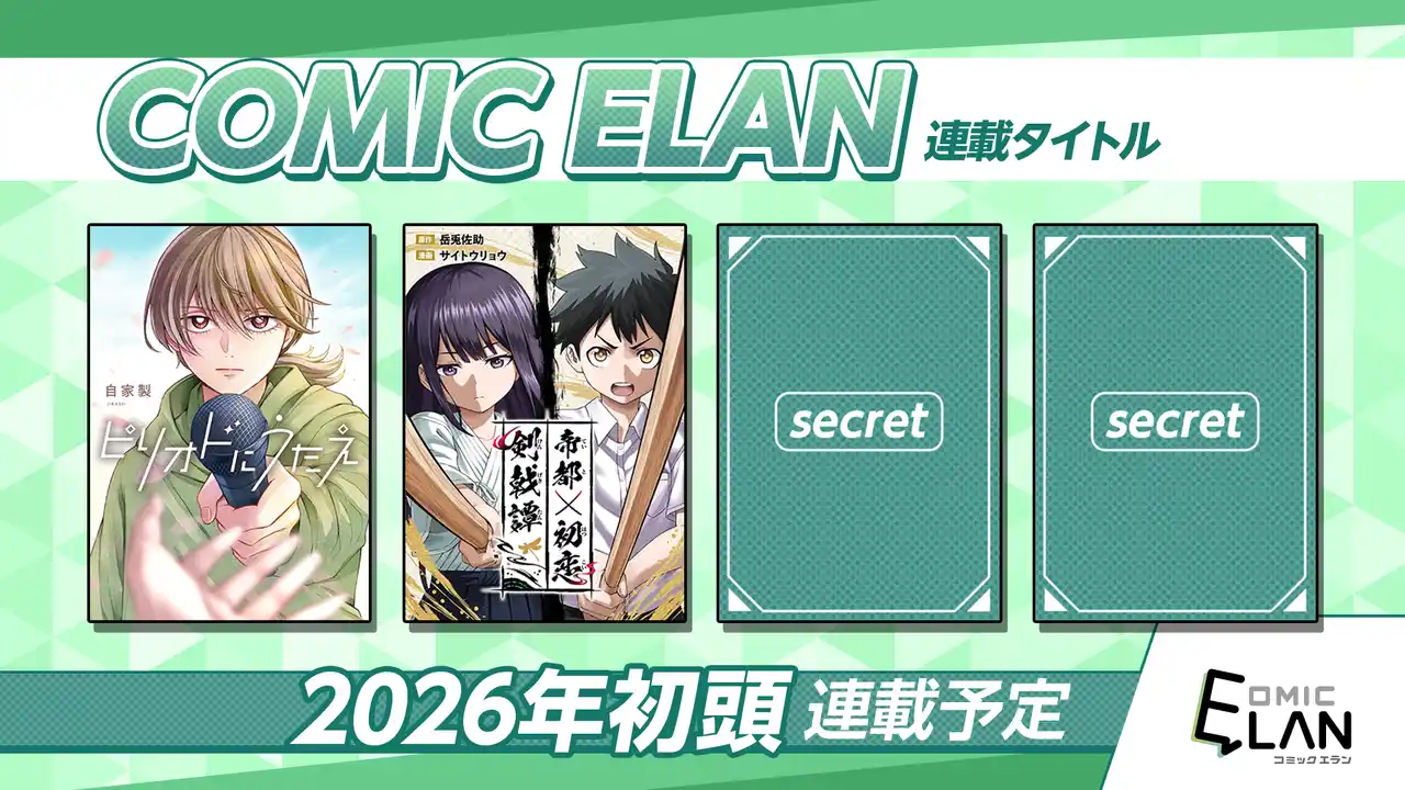 少年/青年向け作品の「COMIC ELAN」(コミックエラン)、少女/女性/TL作品の「Blossom」(ブロッサム)、「BL」作品を取り扱う「BLUE BELL」(ブルーベル)の3レーベルを設立し、2026年の配信を目標に制作を進めています。 |