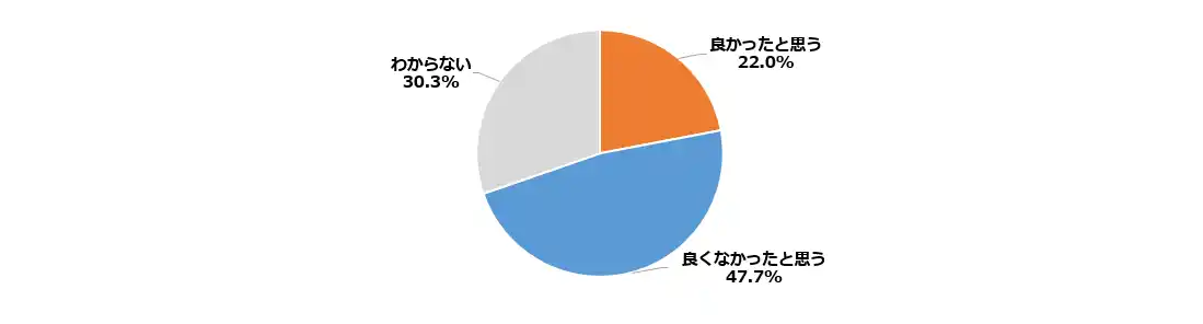 衆院選に向けて、立憲民主党と公明党が新党「中道改革連合」を結成した。両党に所属する衆院議員は離党して新党に参加する一方、両党の参院議員や地方議員は立憲民主、公明両党にとどまるとされる。立憲民主党と公明党が新党を結成したことについて「良くなかったと思う」が47.7%となり、「良かったと思う」の22.0%を上回った。「わからない」が30.3%あった。 |