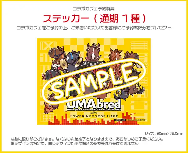 | 【 UMAbred × TOWER RECORDS CAFE 】のコラボカフェ予約チケットは、販売開始日時よりチケットぴあにて販売いたします。 | |||||||||