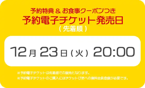 | ※電子チケットのご購入にはチケットぴあ会員登録が必要です。 | |||||||||