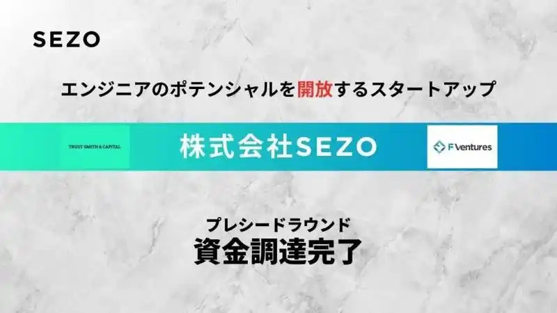 | ・株式会社SEZO、TRUST SMITH & CAPITALおよびF Venturesよりプレシードラウンドで資金調達を実施。AIと圧倒的営業力でエンジニアへの最大還元に挑戦!採用強化と事業拡大へ投資 | ||||