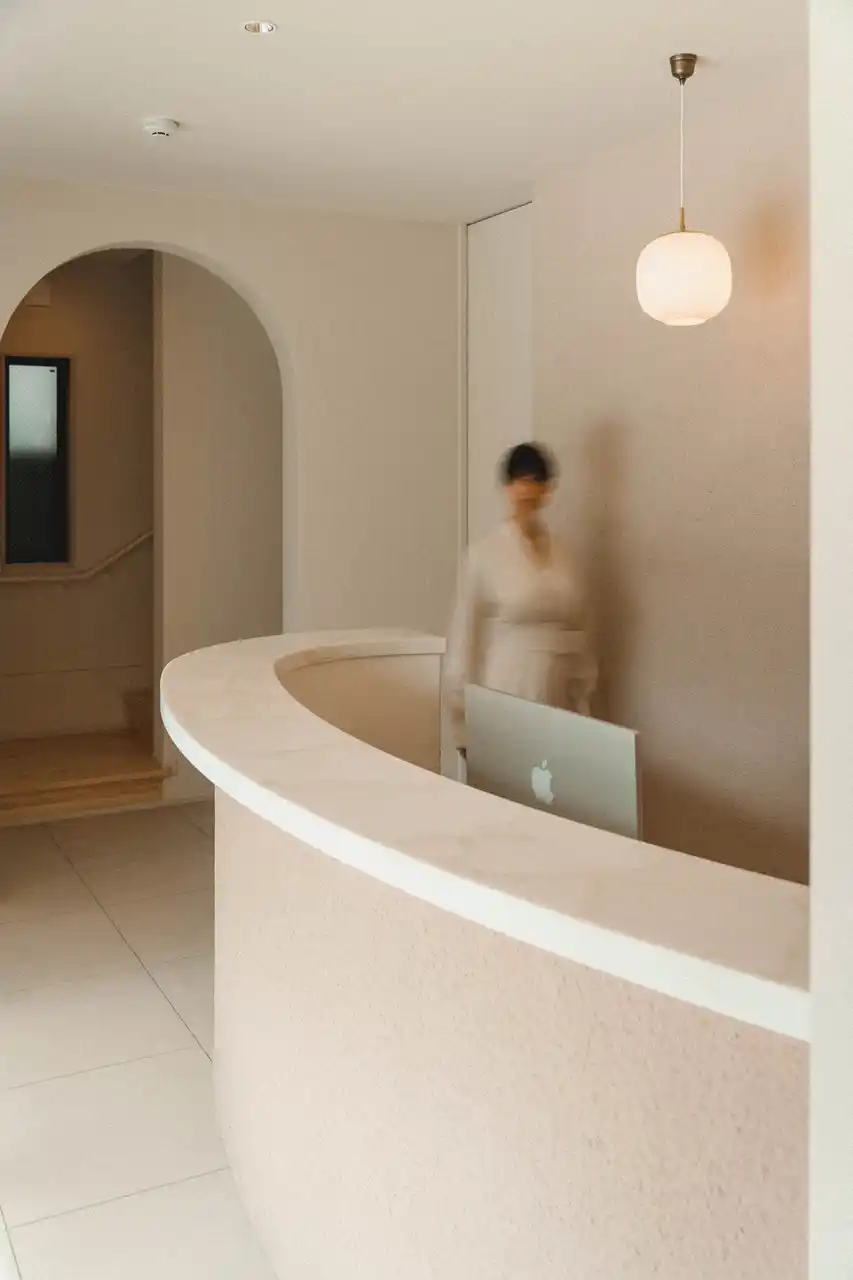 冷たい印象を与えがちな医療空間を、自然から着想を得た7色のブランドカラーで設計。内装にも随所に「丸み」を帯びたフォルムを採用。 専門用語を避け、相手を想像し理解しながら“語りかける”言葉選びを徹底する石川院長の人柄を感じていただけるよう、医師とカジュアルに話せる「対話の場所」として診察室をデザインしています。 |