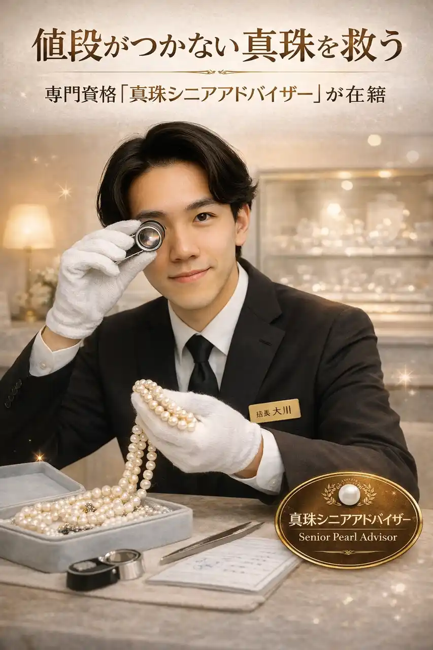 | 遺品整理で発見される古い真珠を適正に再評価するため、真珠シニアアドバイザーが専門査定を担当する千葉県初の真珠専門店 |