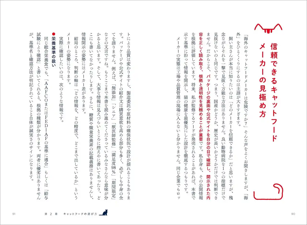 本書は、SNSでも大人気の獣医師であり、ペット栄養管理士・ペット食育士の資格も持つ、ペット栄養学のスペシャリスト・くぅ先生が、猫の健康と寿命を守る食事の基本を徹底解説。栄養バランスの考え方や成分表の見方から、食いつきの悪さ、吐き戻し、体型管理といったお悩み、アレルギー、尿路結石、腎臓病、肝臓病、心臓病などの疾患を持つ猫ちゃんへの食のアドバイスまで、愛猫の健康と寿命を守るために知っておきたい知識を、幅広く網羅しています。くぅ先生が忖度なしにお勧めする、市販のキャットフードリストも掲載。