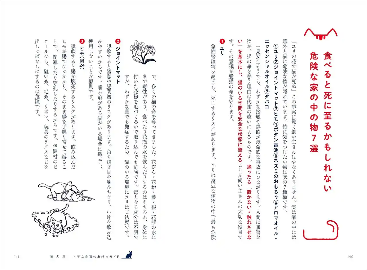 初めて猫と暮らす方はもちろんのこと、愛猫の健康によさそうな手作りフードがNGな理由など、ベテランの飼い主さんでも「そうだったの?」と、おどろく発見がたくさんあるはず! 愛猫の幸せを願うすべての方に贈る、ずっと役立つ一冊です。 |