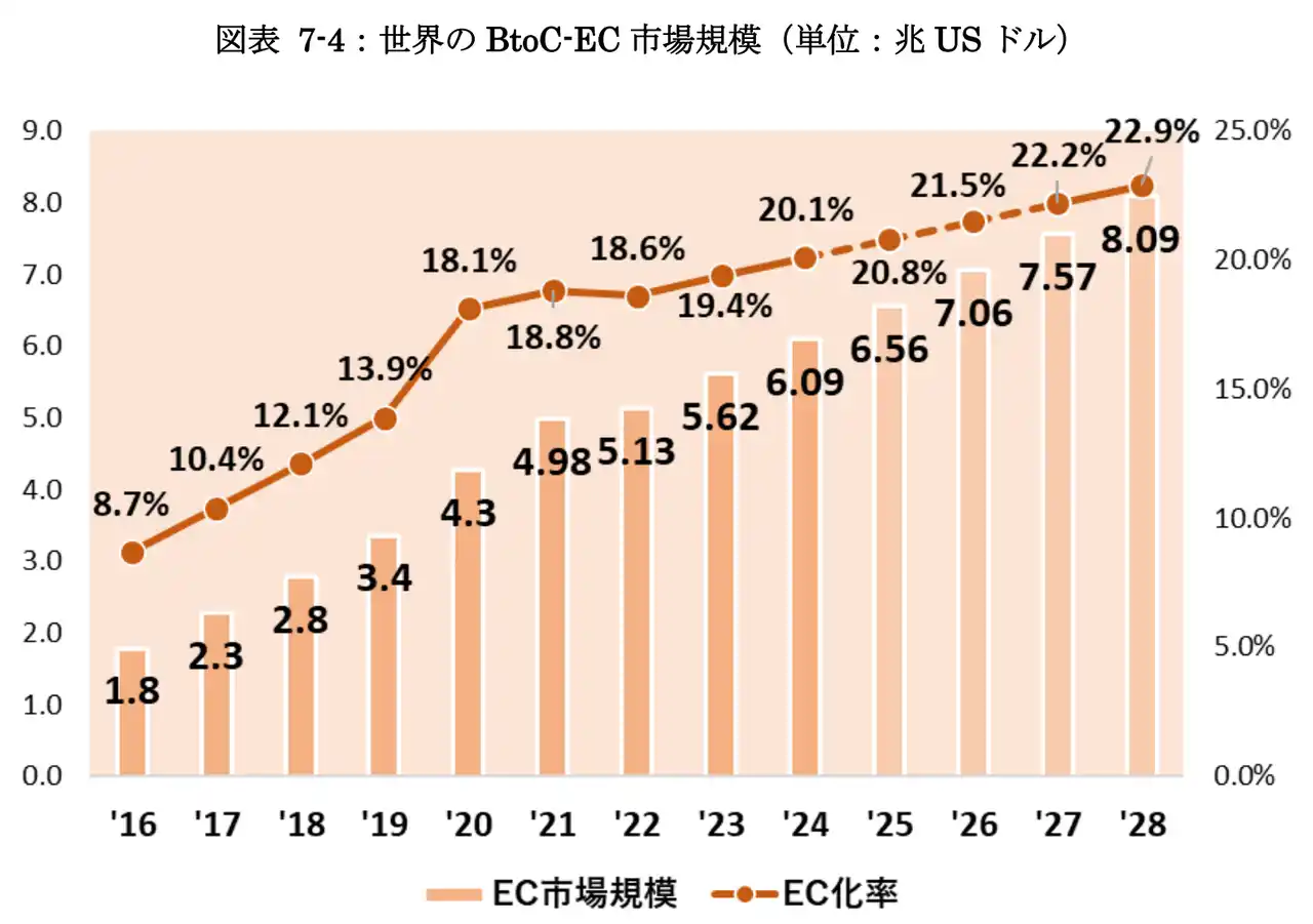 | ここ10年間で越境EC市場は、デジタル技術の進化や通信・決済インフラの整備、海外向け販売チャネルの多様化を背景に、世界的な成長を遂げてきました。越境EC物流の発達により、国境を越えた取引はより身近で現実的な購買手段となっています。この10年で日本の越境ECの市場規模も急速に拡大しており、日本製品は品質や信頼性への評価を背景に、アジア・北米を中心に安定した海外需要が広がっています。一方、近年では米国向け越境取引が関税制度の変動に直面するなど、国際情勢や制度変更の影響を受ける局面も見られます。2026年以降は、物流設計の高度化、各国制度への迅速な対応力が競争力を左右する重要な要素となり、越境ECはより戦略性の高い成長フェーズへ移行していくと見込まれます。 | |||||||||||||