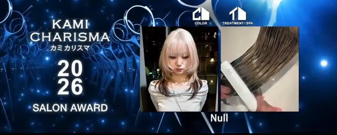 | 株式会社Null(本店:東京都港区、代表取締役:松岡諒、内海風我、読み:ヌル、以下「当社」)は、美容業界の権威のあるアワード『KAMI CHARISMA 2026 アワード』のサロン部門にて2冠(ヘアカラー部門、トリートメント部門)受賞、美容師部門にて代表の内海風我(フウガ)がカラー部門2つ色を受賞しましたことをお知らせいたします。 | |||||||||