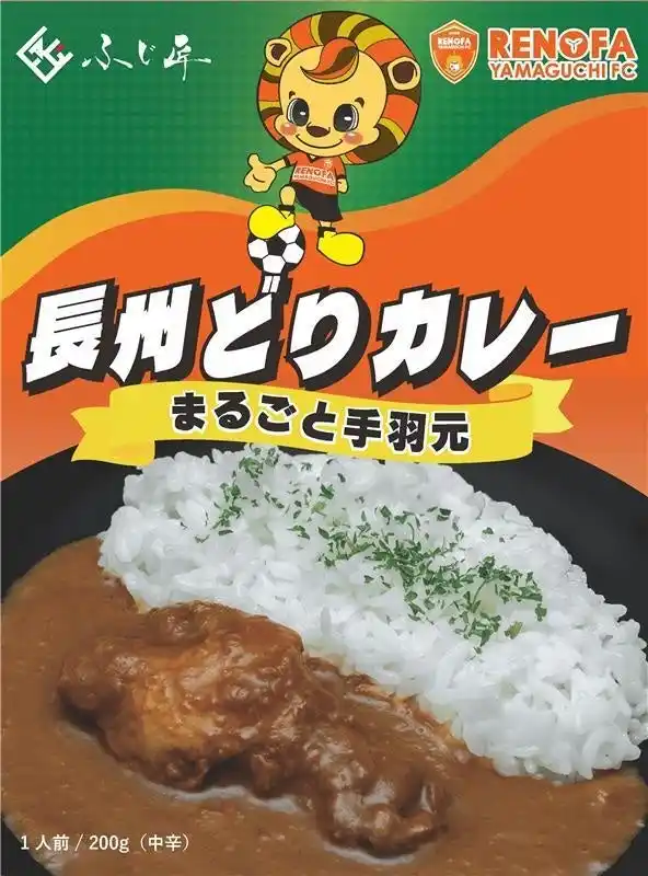 「まるごと手羽元長州どりカレー」 グループ企業である富士商株式会社では、レノファ山口FCとのコラボ商品として「まるごと手羽元長州どりカレー」を販売しております。 |