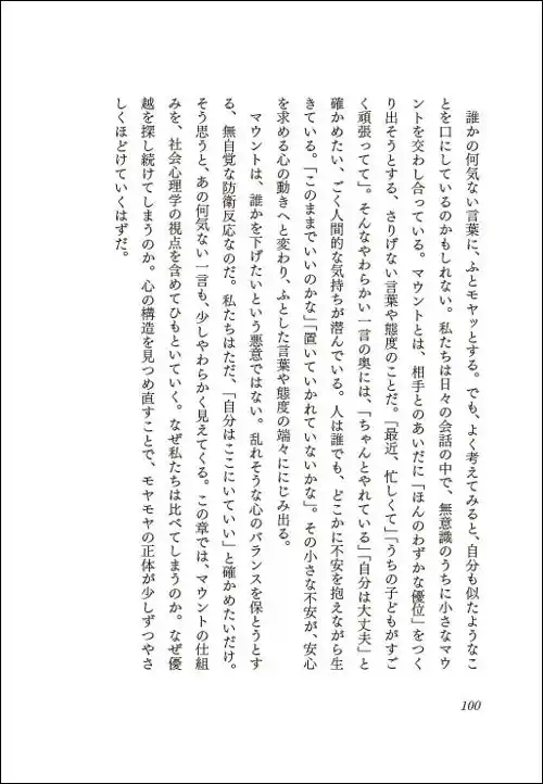 本書では、数々の事例を示し、マウントとモヤモヤの構造を読み解いていきます。