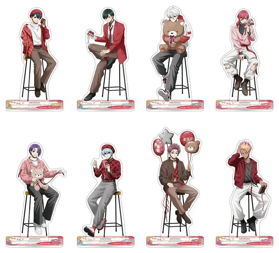 | 新商品には、潔や凛たち8人の描きおろし&描き起こしイラストを使用。赤を基調としたバレンタインらしい服装に身を包んだ等身絵柄の「アクリルスタンド」「ビッググリッター缶バッジ」や、キューピッドに扮したデフォルメキャラ絵柄の「ばね口ポーチ」「キャンディキーホルダー」など、さまざまなアイテムをラインナップしています。 | ||||||||||||