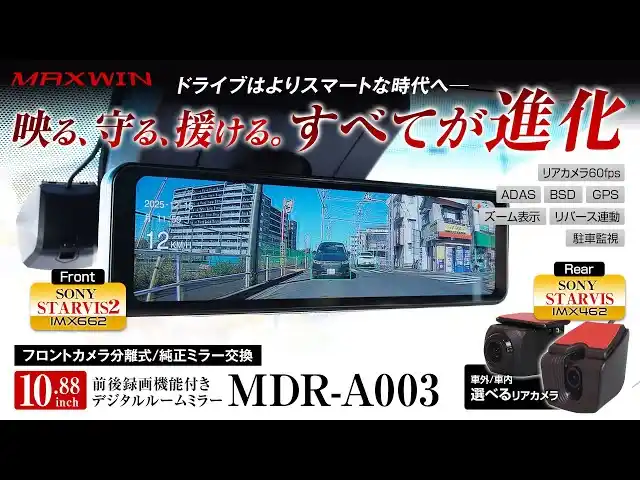 カー用品ブランドMAXWIN(運営:昌騰有限会社、所在地:大阪府泉大津市)は、運転支援付き純正交換型デジタルミラーシリーズ(MDR-Aシリーズ)に前後カメラやミラーモニターから配線やソフトウェアのシステムまで拘った最新モデル『MDR-A003』の販売開始をお知らせします。 |