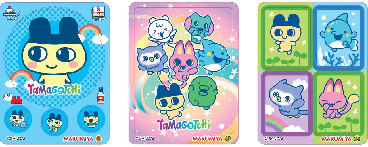 2品共通の丸美屋オリジナル「たまごっち キラキラシール」1枚入り(全20種)です。 |