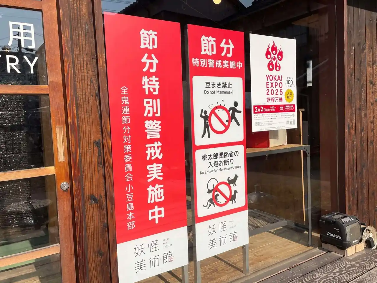 | これまで妖怪美術館および「YOKAI EXPO(妖怪万博)」では、節分で日本全国から追い出された鬼たちが安心して過ごせる場所として、あえて「桃太郎関係者 立入禁止」の看板を掲げるなど、“鬼を守る島”としての演出を行ってきました。 | |||||||||