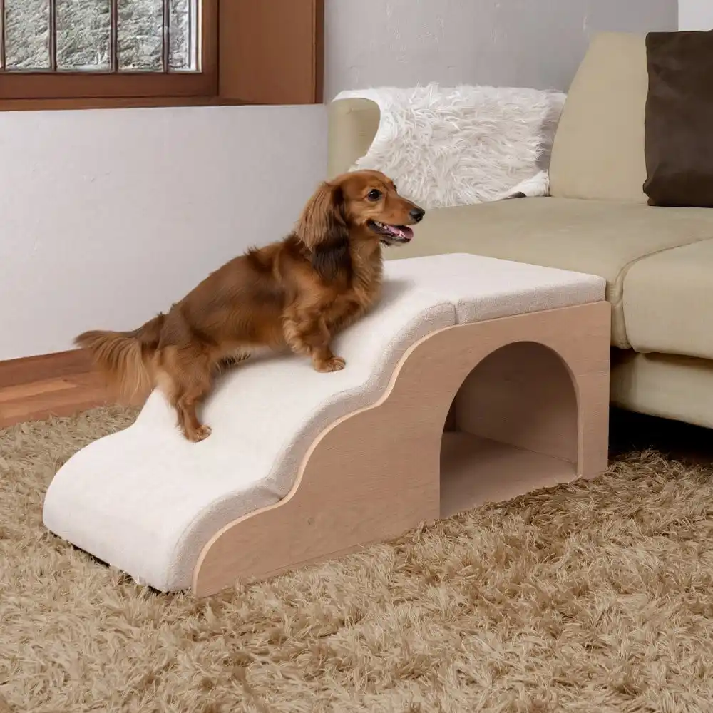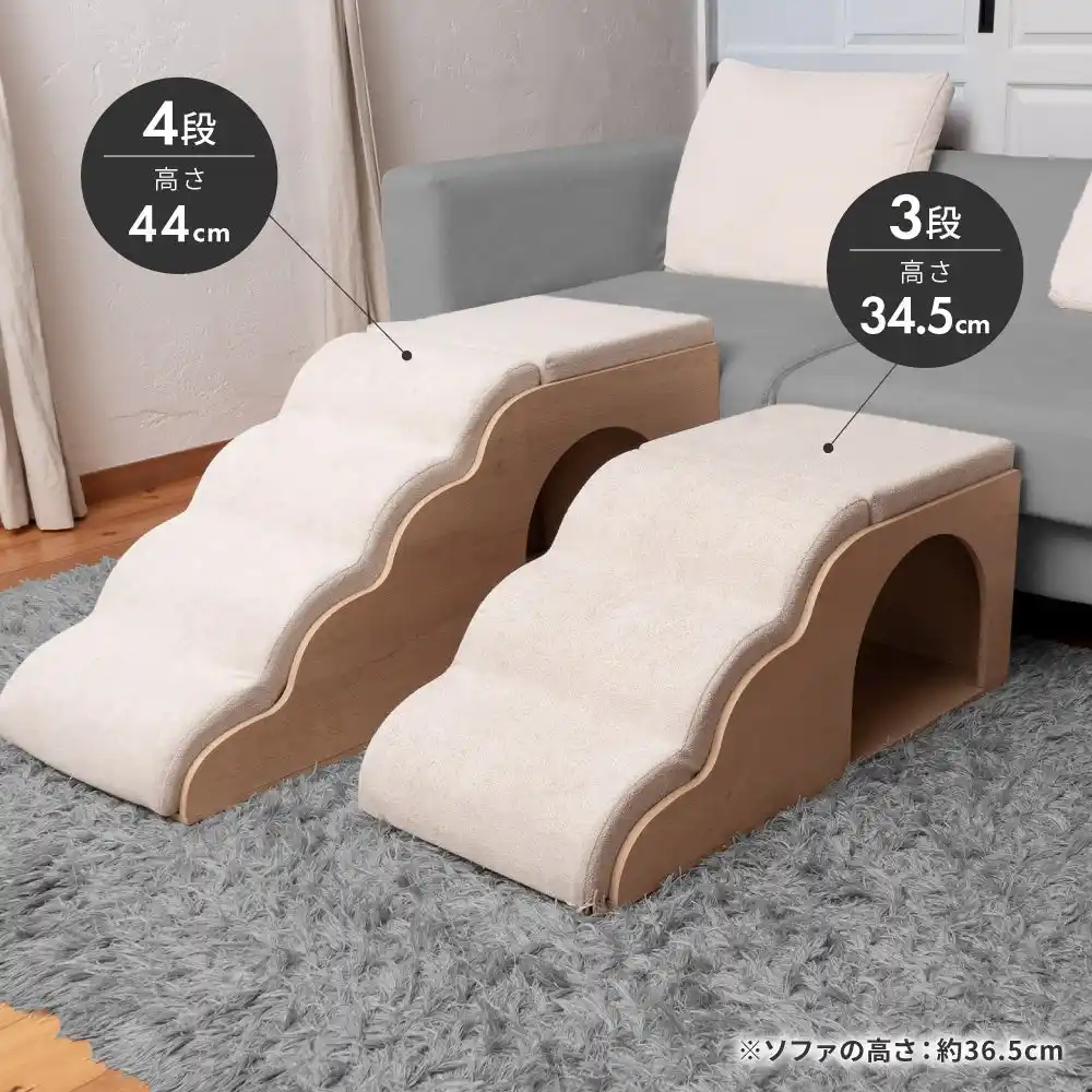 段差をやさしくサポートするスロープとしてはもちろん、下部のスペースは愛犬のくつろぎハウスとしても活用可能。 「上りやすさ」と「落ち着ける居場所」の両方を、1台で実現できます。 |