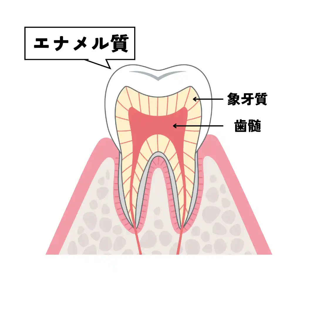 | エナメル質は、歯の表面を覆っている組織。人体で最も硬い組織ですが、食事や歯磨きなどによって少しずつ小さな傷がついてしまいます。 | |||||||||||||