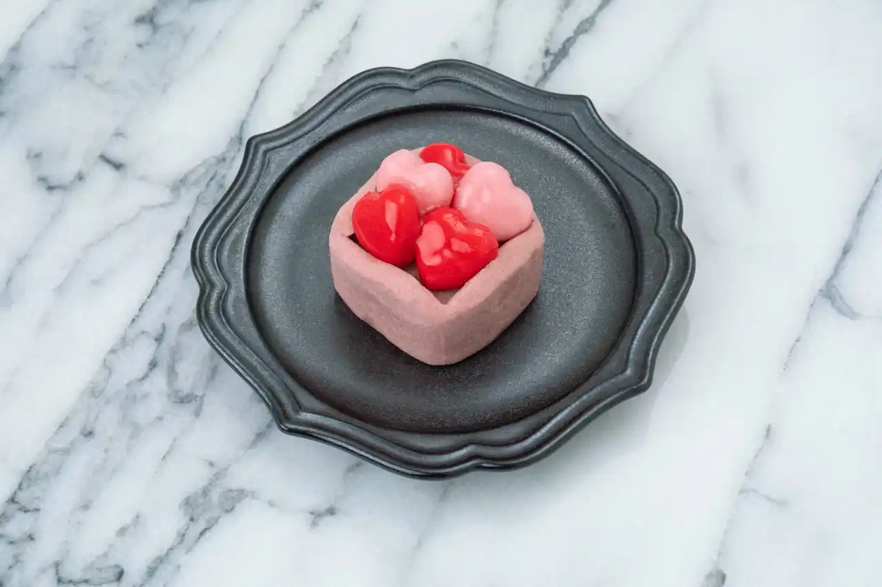 1778年創業、日本三大銘菓の一つ「越乃雪」を作る新潟長岡の老舗「越乃雪本舗大和屋」。伝統と革新を融合させる匠が、バレンタイン限定の上生菓子を仕立てました。ペルー産「フローラルカカオ」を使用し、その名の通り花のように甘く華やかな香りを餡に練り込んでいます。和三盆の繊細な甘みとカカオのふくよかな余韻の調和に加え、見た目の美しさもお楽しみください。 |
