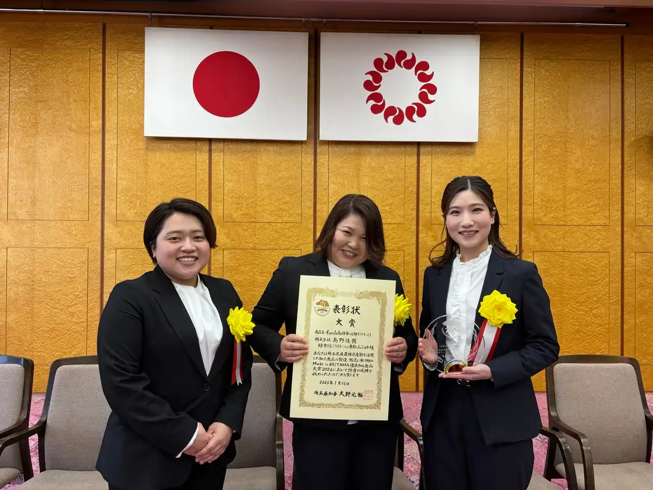 2026年1月16日には埼玉県知事公館にて表彰式が開催され、大野元裕埼玉県知事より各賞の授与が行われました。 |