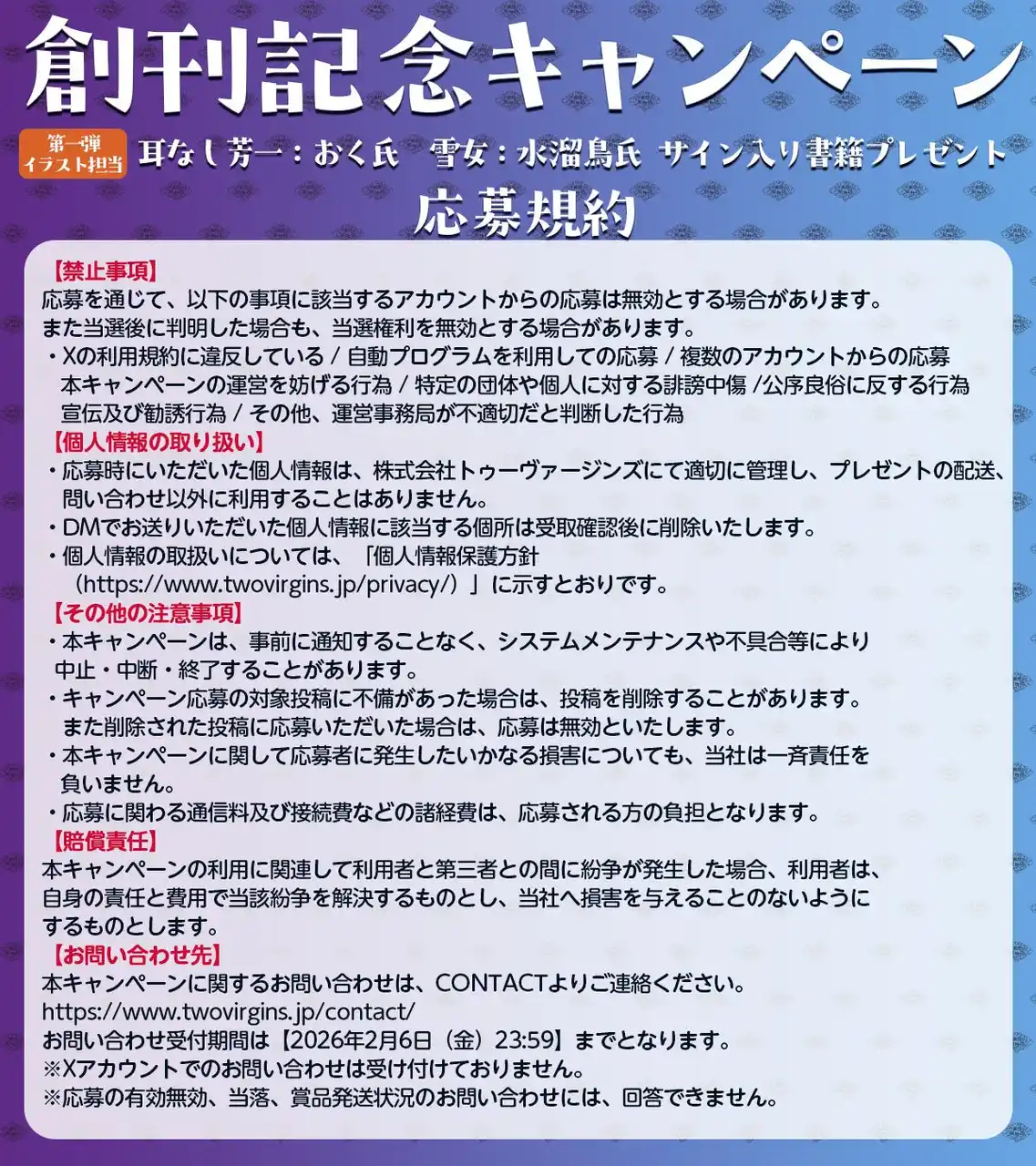 詳細と応募規約については、以下のSNSと、シリーズ特設ページに掲載いたします。また、最新情報についても、こちらから順次公開予定です。 |