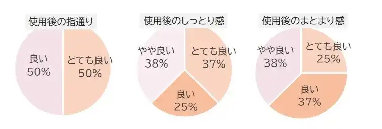 100%の方が、髪の指通りの良さや使用後のしっとり感、まとまりを実感していました。 |