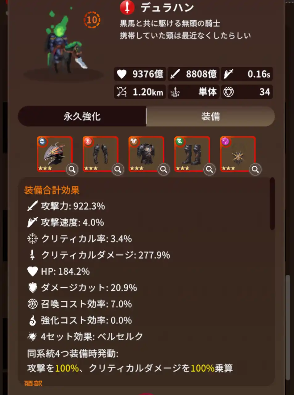 ・1キャラ最大5部位 の装備枠+シリーズ 4点装着で「セット効果」 発動 |
