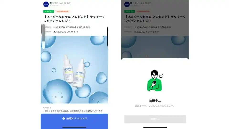 POPUP期間中は、LIPOPEEL公式LINEを活用した抽選キャンペーンを開催しました。 新たなコミュニケーション接点を通じて、商品を実際に手に取って体感いただく機会を創出し、ブランドや商品への理解促進を図ります。 |