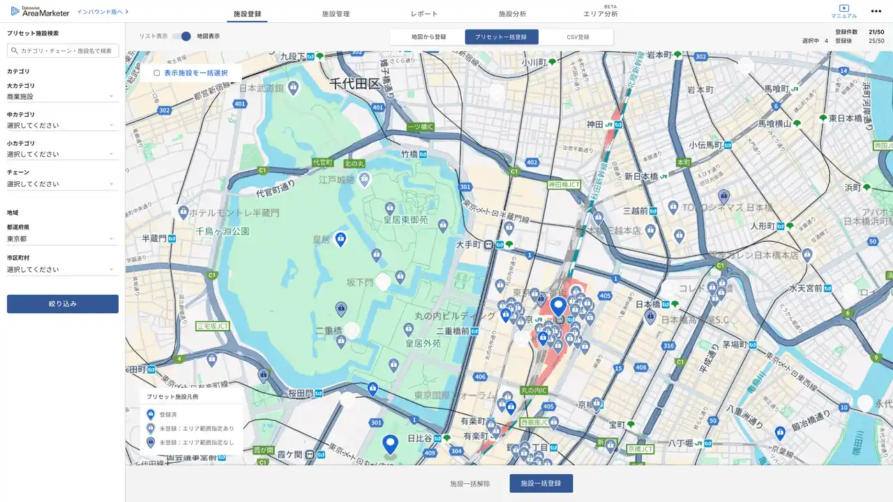 | ・建物・エリアの一括登録を可能にする施設・エリア情報 データベースを実装 | |||
