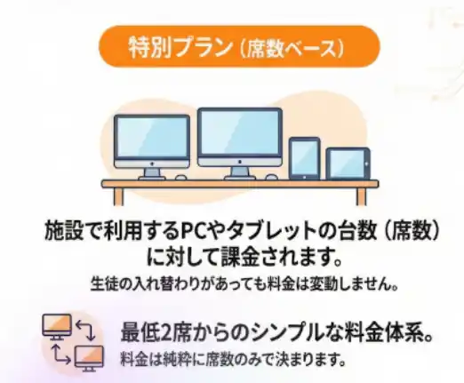 そこで今回、現場の声を反映し、料金体系と教材構成を全面的に見直した特別プランを開発しました。 |