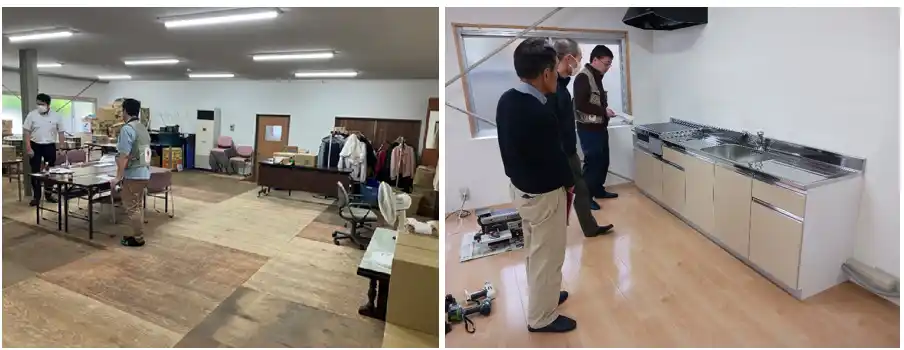 | AAR Japanは、地震で傾いてしまった「LABO」の作業場の床を修理する際、災害時に寝泊りが可能となるようフローリングの床に張り替えています。さらに避難が長期化した場合に必要となるシャワー室、バリアフリートイレ、自炊可能なキッチンを整備しました。シャワー室、トイレなどの整備費用の総額は647万円に上り、全額がAAR Japanにお寄せいただいた寄付金で賄われました。 | ||||