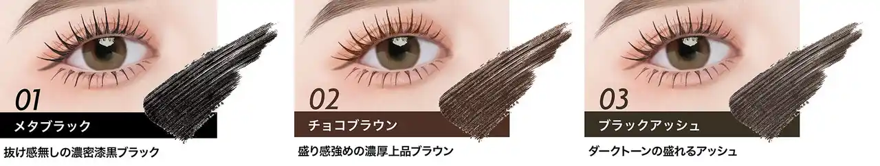 メタブラック、02 チョコブラウン、03 ブラックアッシュ |