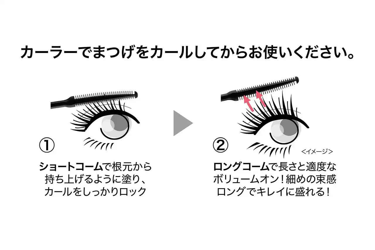 塗った直後のカール落ちを防ぎ、メイクしたてのカールを瞬間ロック!形状持続ポリマー配合。 |