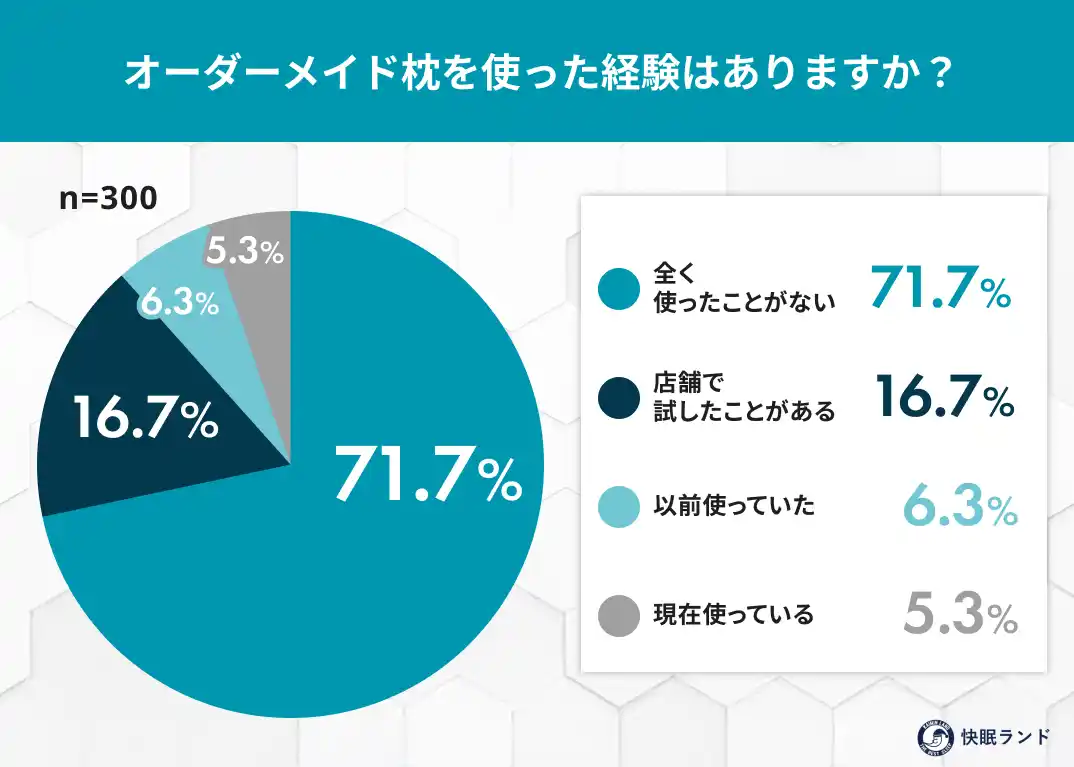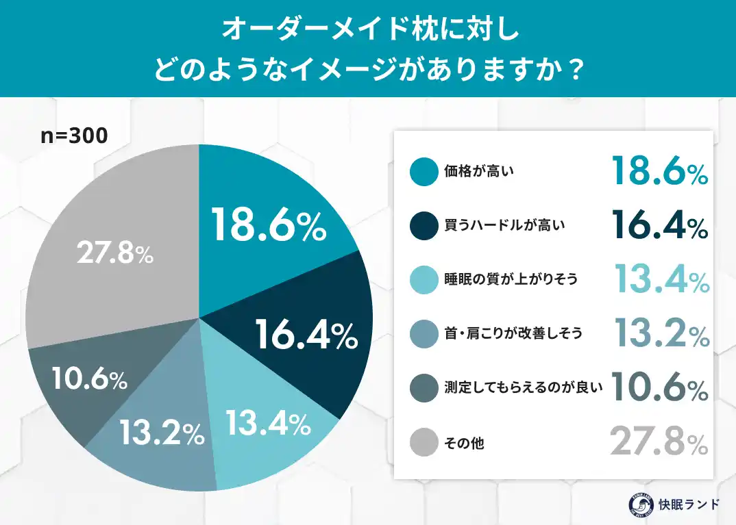 新年を迎え、「生活習慣を整えたい」「睡眠の質を見直したい」と考える人が増える時期。中でも、自分の体型や寝姿勢に合わせて作る“オーダーメイド枕”は、睡眠投資の選択肢として注目されています。一方で、「価格が高そう」「買うハードルが高い」といったイメージも根強く、実際の購入・使用状況は見えにくいのが実情です。快眠グッズ紹介サイト「快眠ランド」を運営するムーンムーン株式会社は、全国の20~60代男女300名を対象に、「オーダーメイド枕」に関する認知度・使用経験・購入意向・価格意識について調査を実施しました。 |