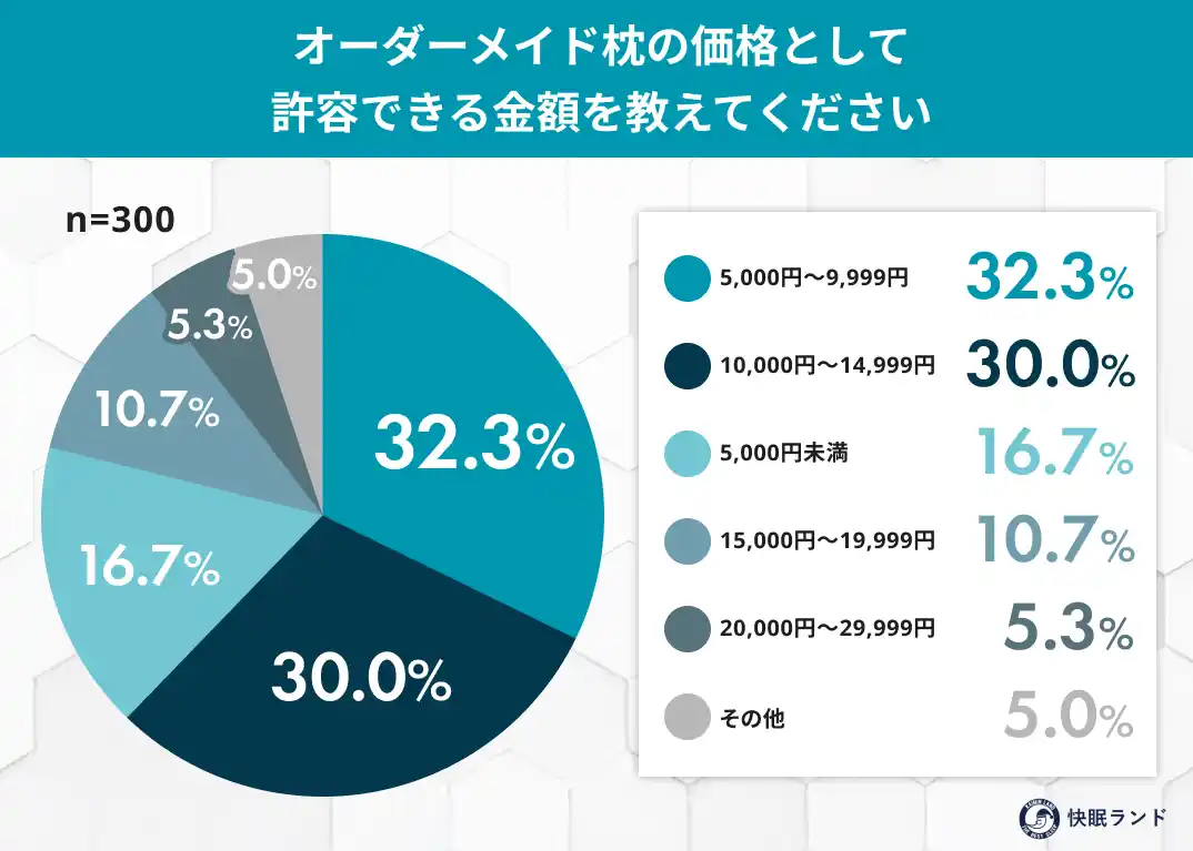 → 8割近くが「1万5千円前後まで」を想定しており、一般的なオーダーメイド枕の価格帯とのギャップが購入の壁になっている可能性があります。 |
