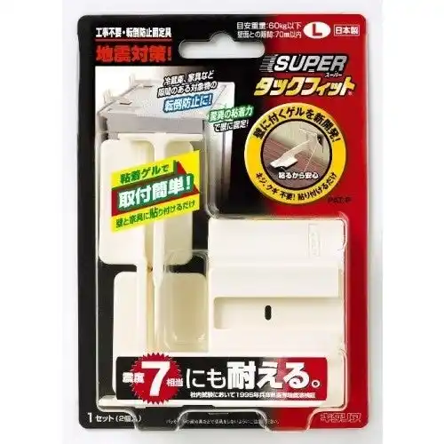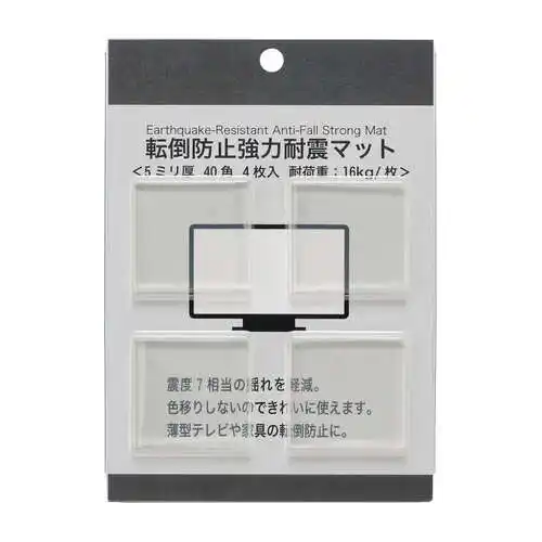 貼るだけで簡単に転倒防止対策ができるアイテム。薄型テレビや家具の安全対策に。粘着が弱まった際には洗い流し乾かすことで再利用が可能です。 |