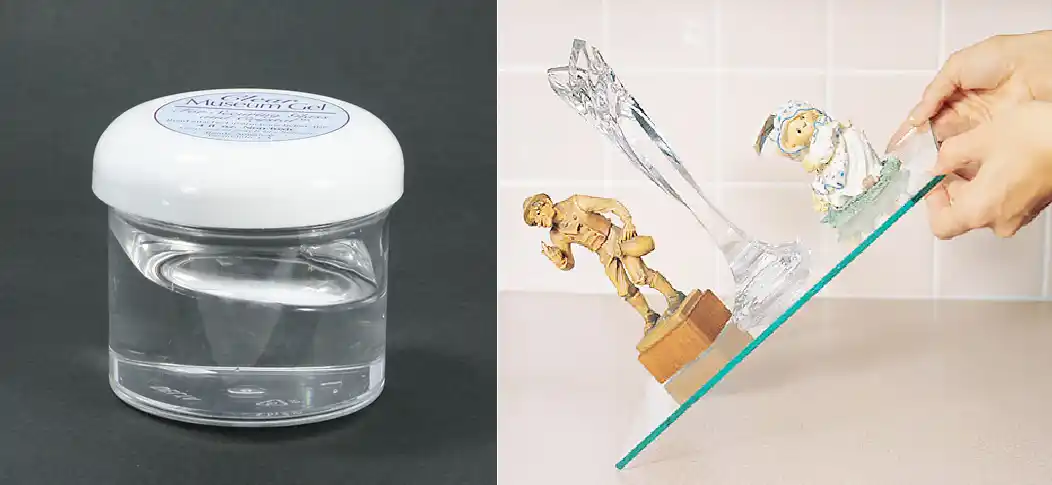 ガラス製品の転倒防止用接着剤。美術館や博物館でコレクションを守る用途で開発されたアイテムです。一般家庭でも大切なコレクションを守るために活用できます。 |