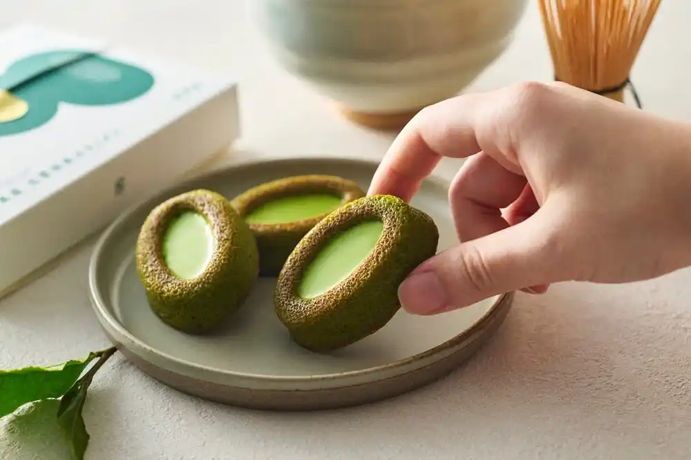 そんな自然の恵みと、人の想いをたっぷり受けて育った「桃翠園」の出雲抹茶の魅力を詰め込んだ『出雲抹茶のティグレ』。しっとりとした食感に、さわやかな抹茶の香りと、奥行きのある旨味が広がります。 |