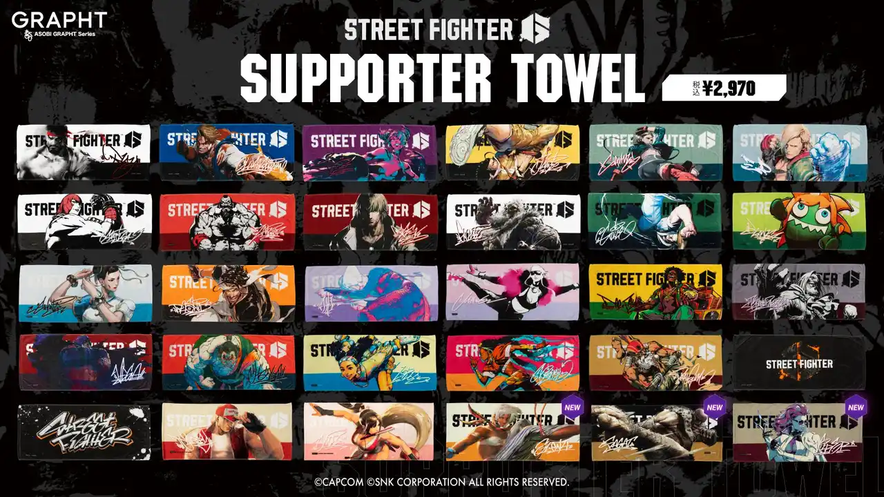 この度『GRAPHT』は、「ストリートファイター 6」(株式会社カプコン)のYear 2、Year 3でプレイアブルキャラクターとして実装された「エレナ」「サガット」「C.ヴァイパー」をデザインした『サポータータオル』3種を発売し、本日2026年1月22日(木)11:00よりGRAPHT公式ECサイト(GRAPHT OFFICIAL STORE)にて予約販売を開始いたします。 |