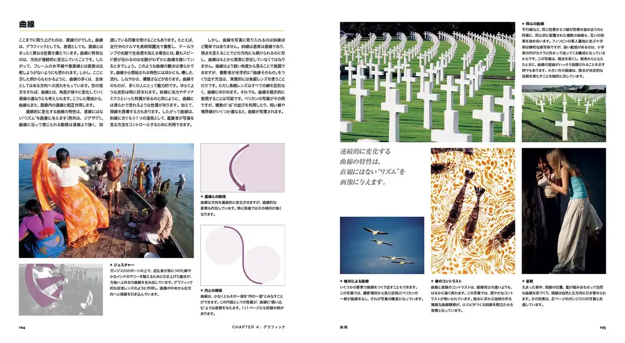 デザインの基本要素、レンズとタイミング、色と光といったトピックを1つずつ丁寧に取り上げていきます。さらに、原則にとどまらず「その破り方」と「破る理由」をひも解いていきます。 |